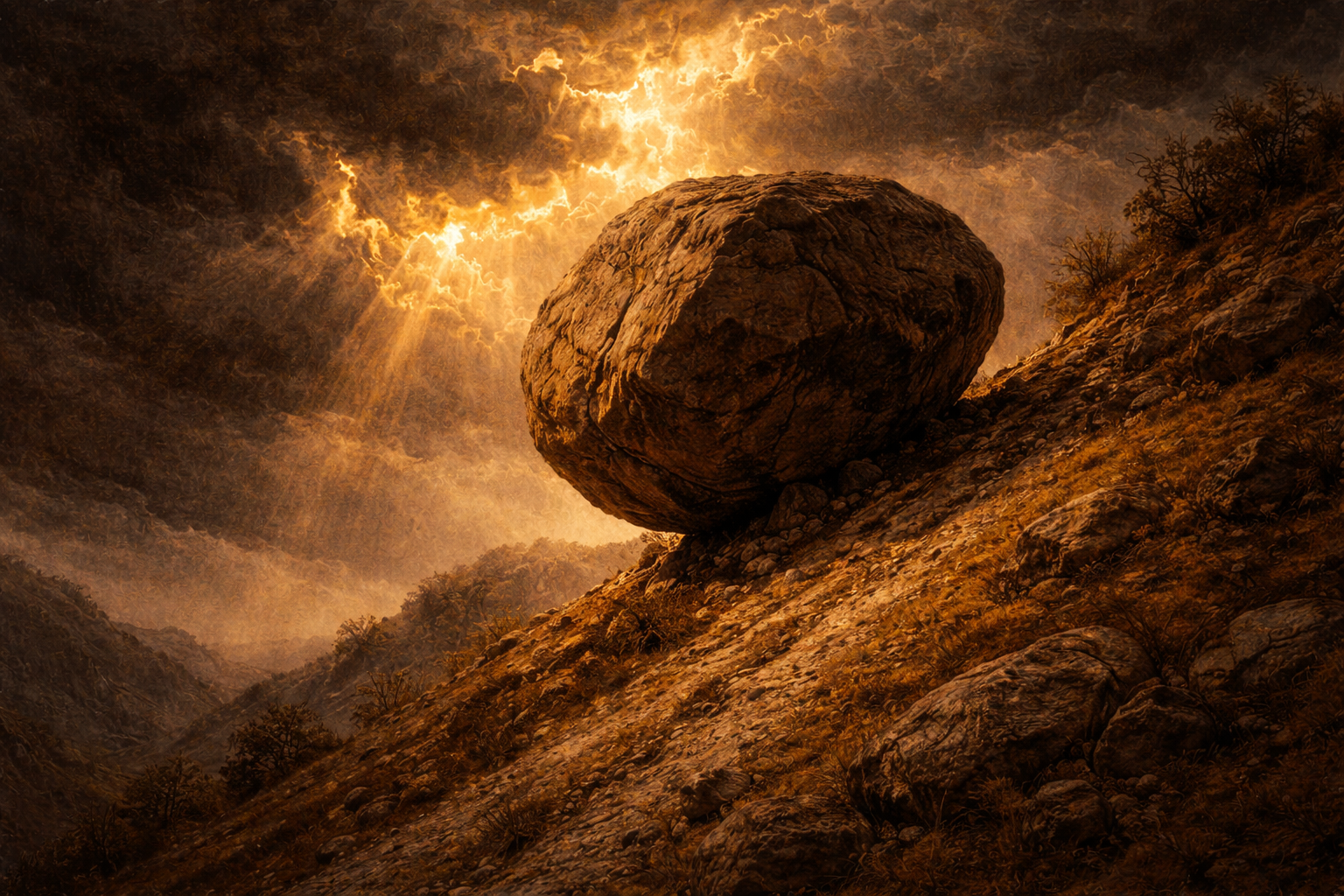 The good news: the failure doesn't mean anything. It's not a verdict on your worth. It's not proof that you shouldn't have tried. It's the rock rolling back down the hill, which is what rocks do. The question was never "will the rock stay at the top?" The question was always "will you walk back down and push again?"