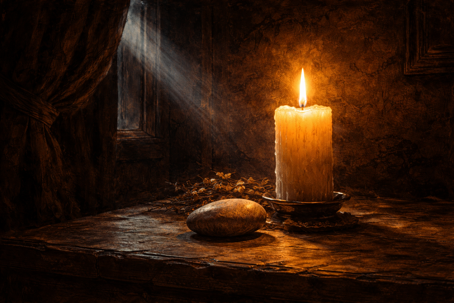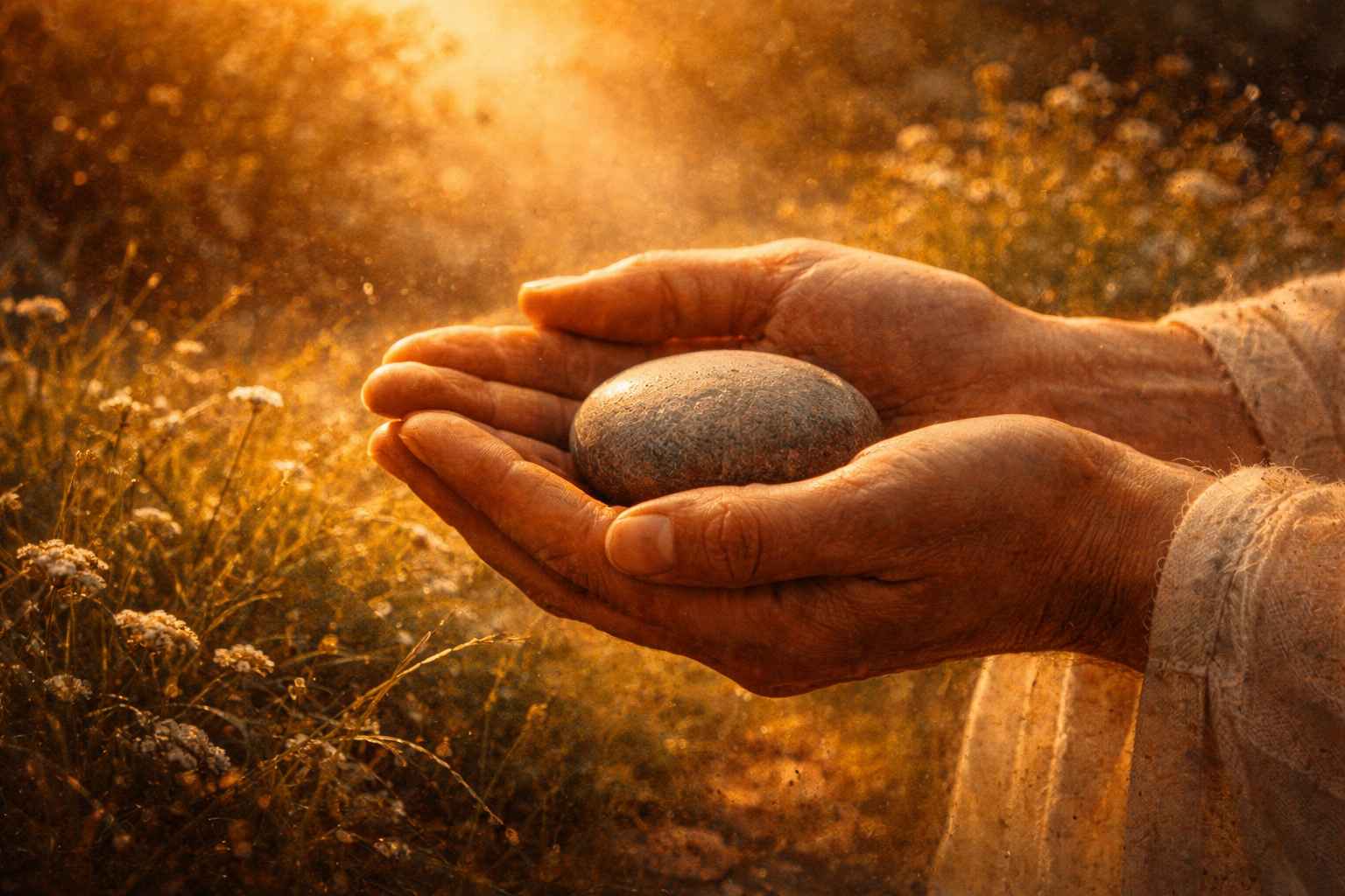 The Stone: A physical stone is given to the person — small enough to hold in a pocket, heavy enough to feel. "Carry this. When the old rock calls, hold this one instead. It doesn't fix anything. It just reminds you that you chose."