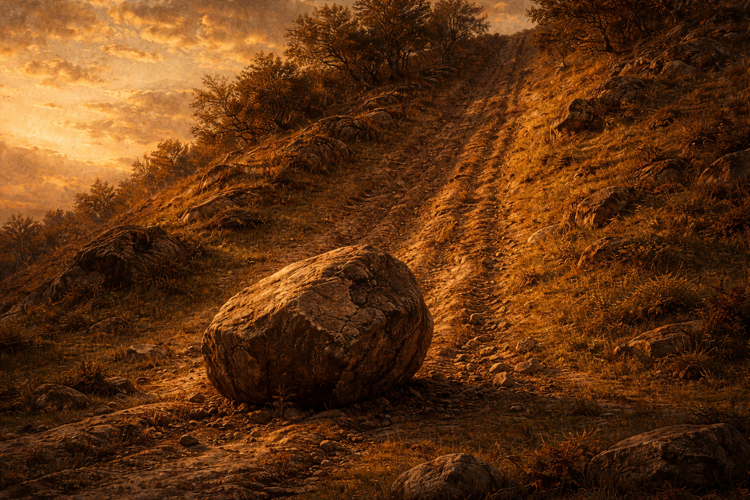 The absurdist question is not “how do I push harder?” It is “is this my rock?” If the answer is no, putting it down is not failure. It is clarity. Find the rock that is yours. You’ll know it because the pushing, while still hard, will feel like something you chose.